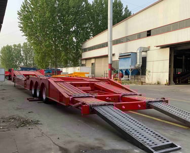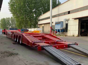 Multi-axle low-bed semi-trailers, suitable for heavy-duty and vehicle transportation.